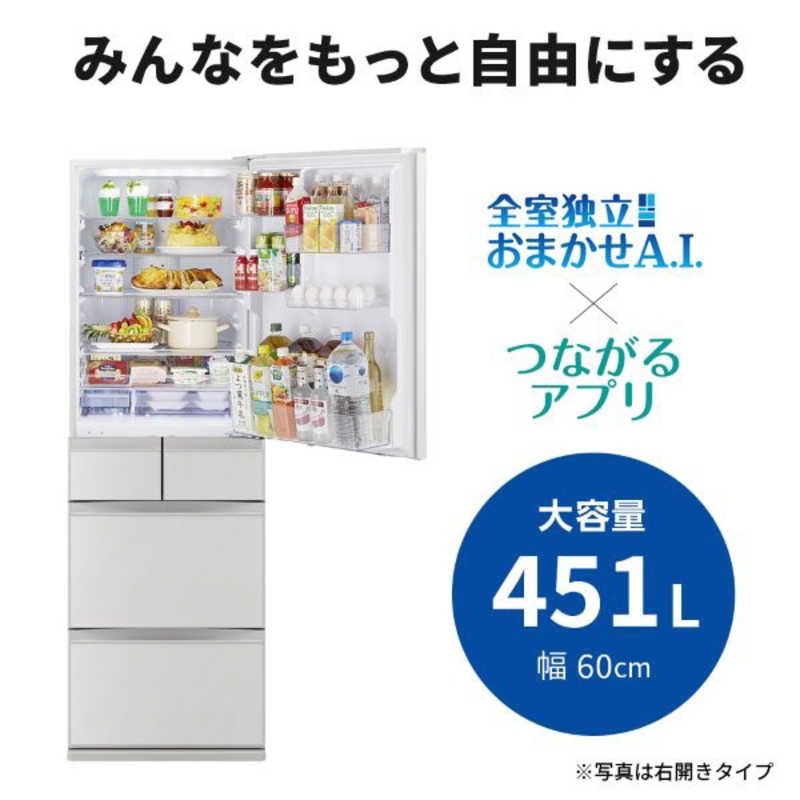 三菱 MITSUBISHI 451L 5ドアノンフロン冷蔵庫 MDシリーズ アプリ対応 MDシリーズ 左開き フラットリネンホワイト MR-MD45NL-W(大型)