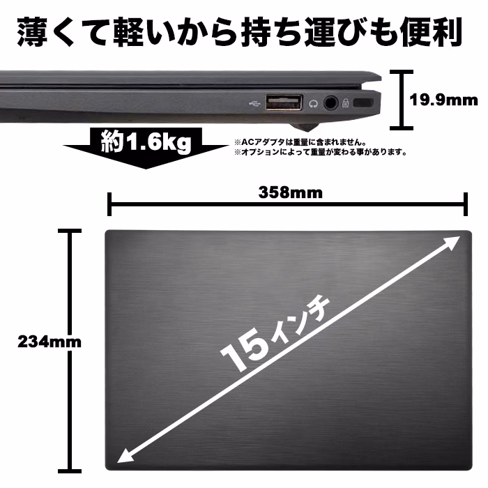 15.6型は見やすく、更に持ち運びにも適した丁度いいサイズです。