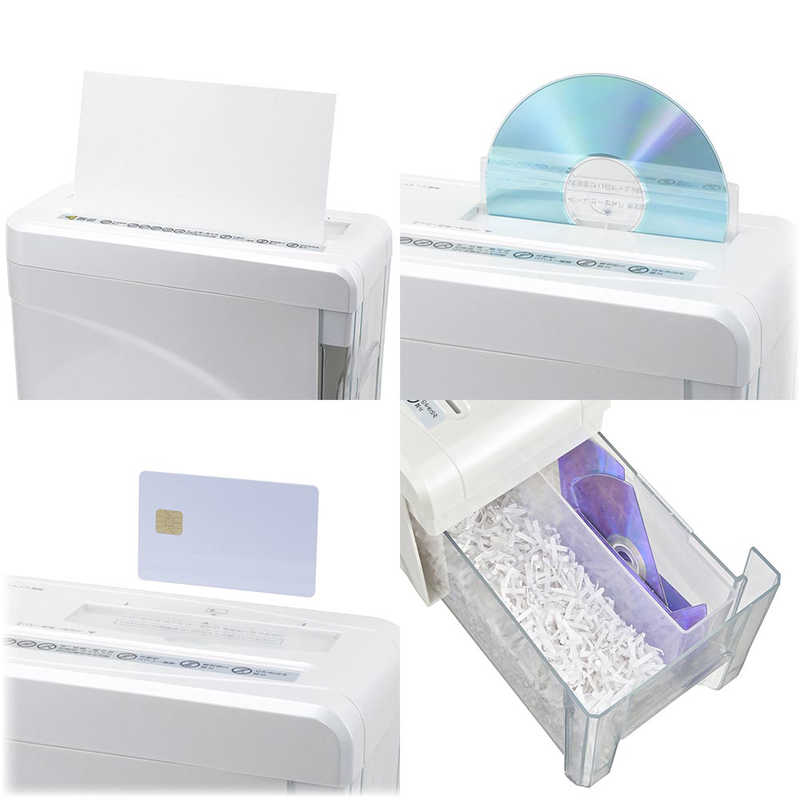 ● 最大細断枚数:紙…A4コピー用紙(64g/m2)2枚、CD/DVD・カード…1枚