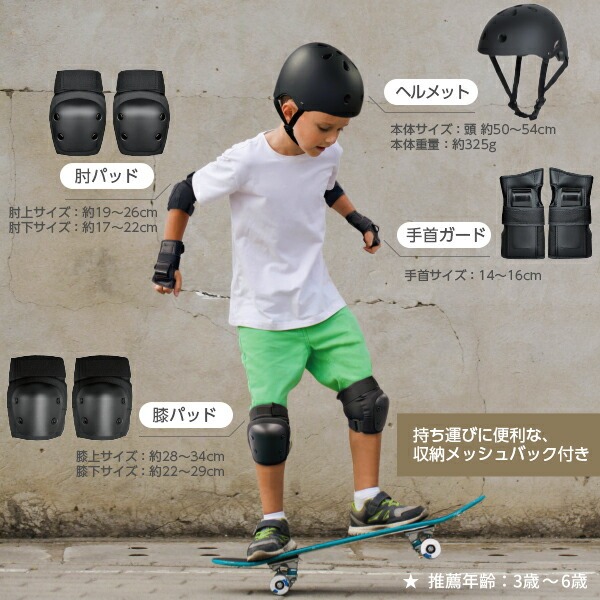 FUGU INNOVATIONS MEISTER.F 子供用 プロテクター(ヘルメット、肘パッド、膝パッド、手首ガード)収納バック付き MF-KIDSSET01-BK