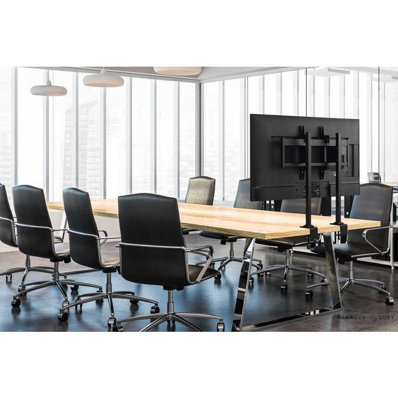 天板をクランプで挟み込み固定するディスプレイスタンド。