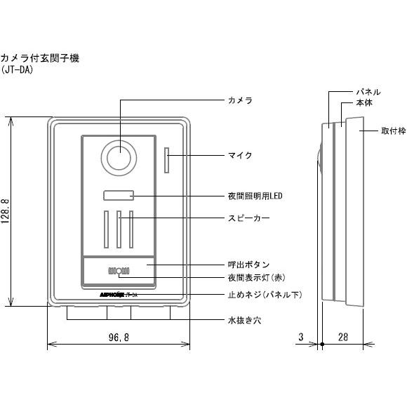 ■寸法 カメラ付玄関子機:W96.8×H128.8×D28(mm)