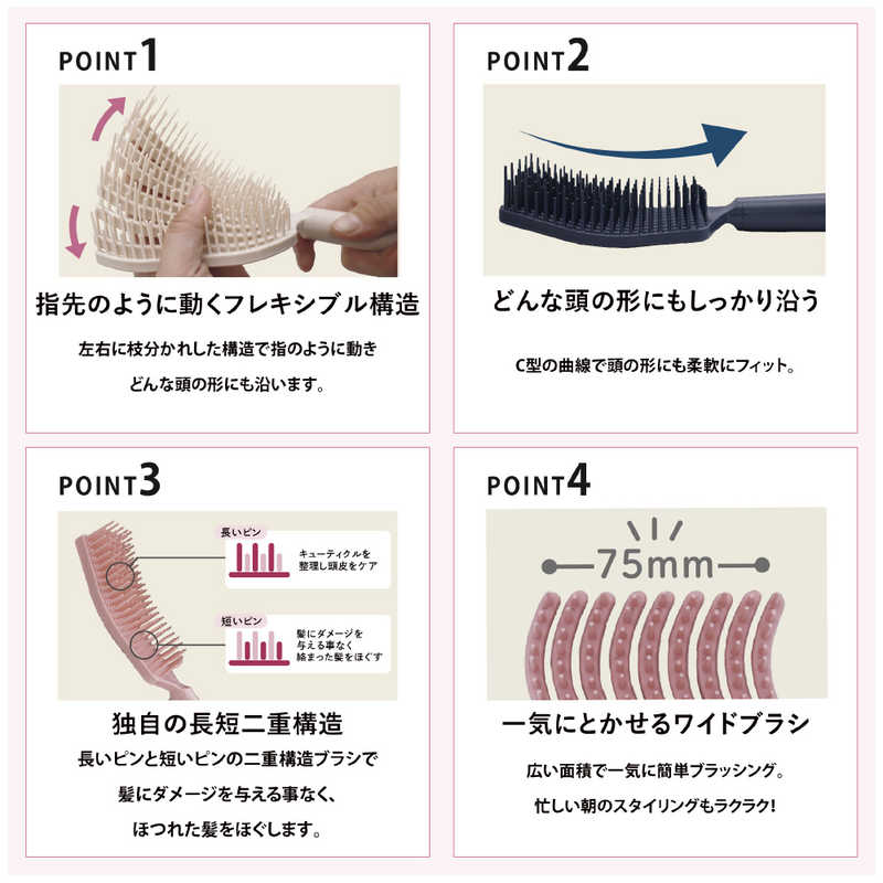 ・広い面積で一気に簡単ブラッシング。忙しい朝のスタイリングもラクラク!