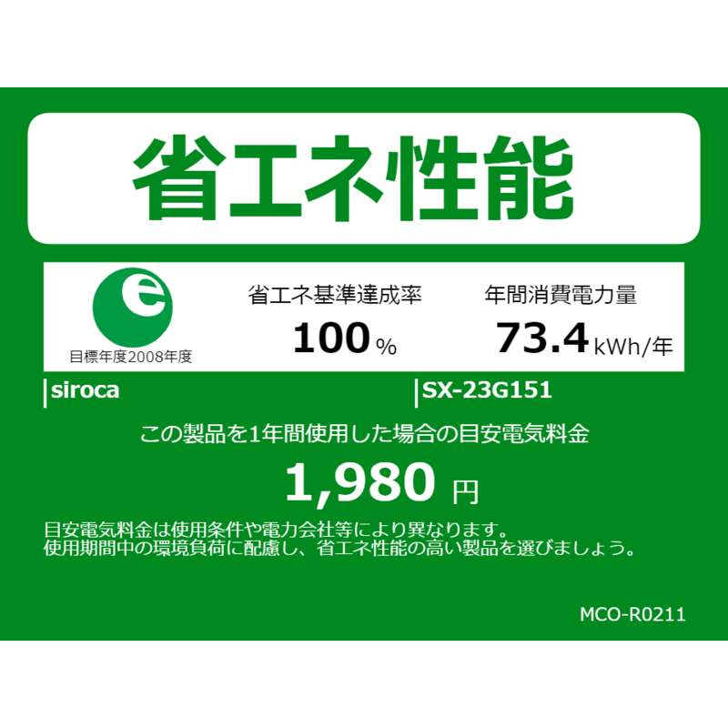 ●年間消費電力量:73.4kWh/年