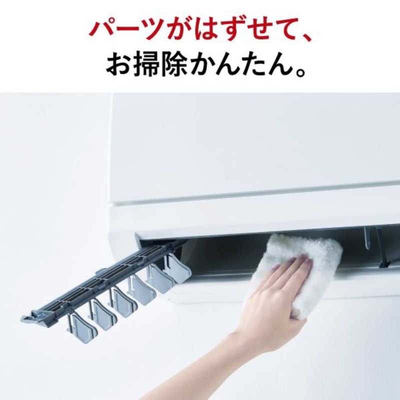 ・はずせるボディ:エアコンの前面パネルやフラップなどのパーツを取り外して奥までお掃除らくらく。