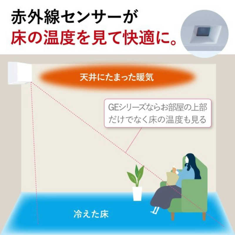 床温度センサー「フロアアイ」が、赤外線でお部屋の床温度を測るから、人の近くの温度が分かります。