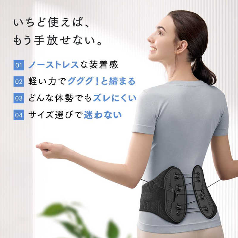 巻きつけて軽く引っ張るだけで、強力に体をサポートする腰ベルト。
