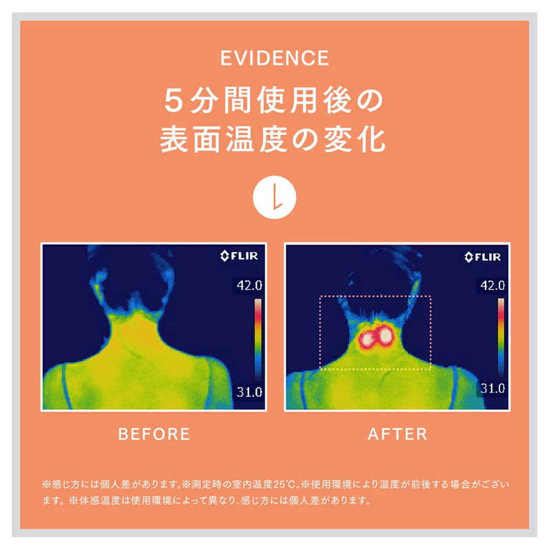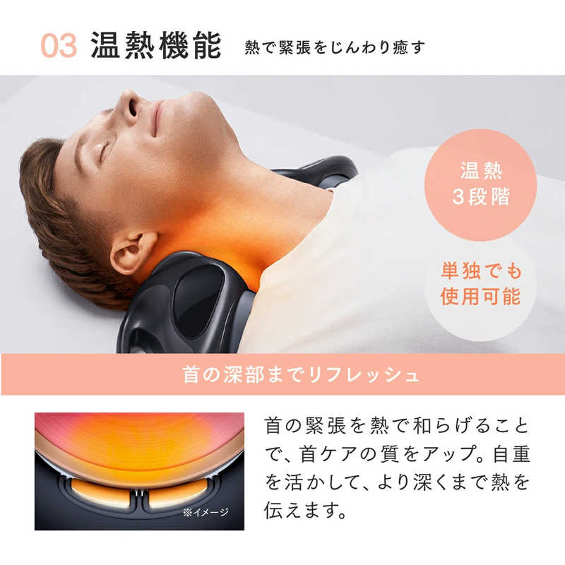 3段階の温熱モードを搭載し、自重を活かすことで温熱がより深く浸透します。