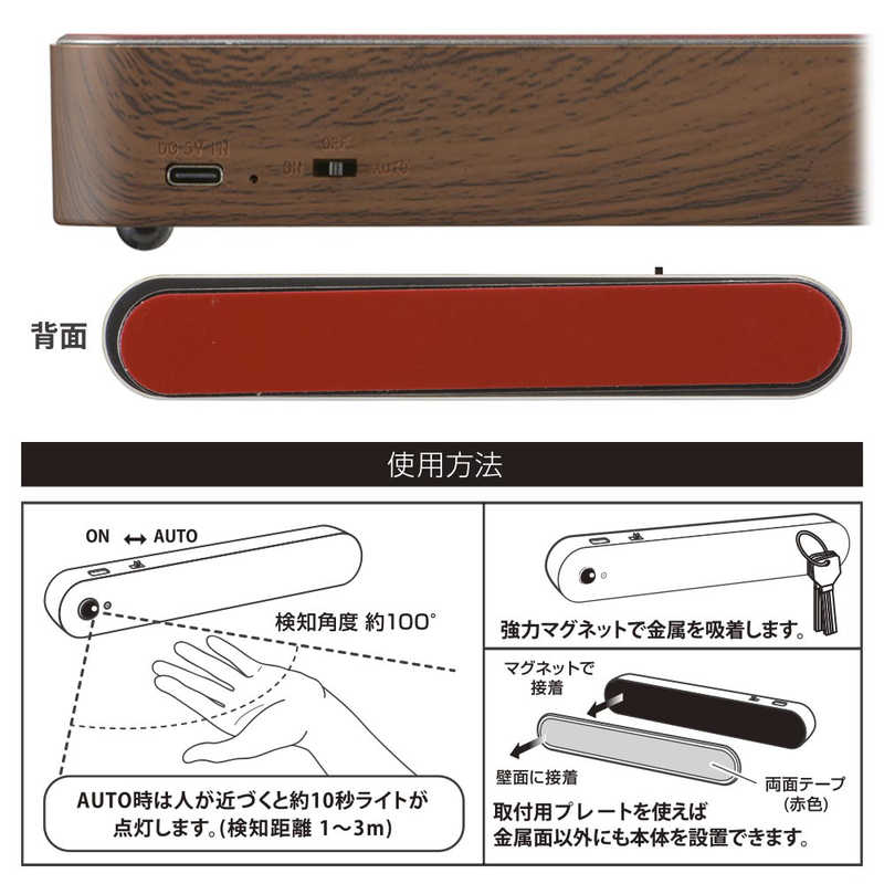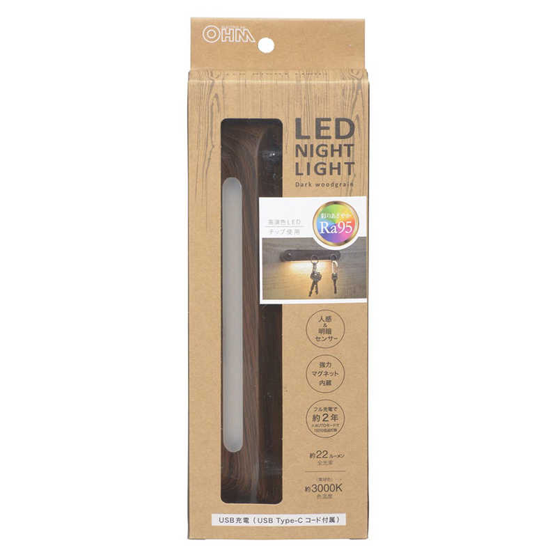 オーム電機 LEDナイトライト 人感&明暗センサー付き 濃い木目調 NIT-BK06-K