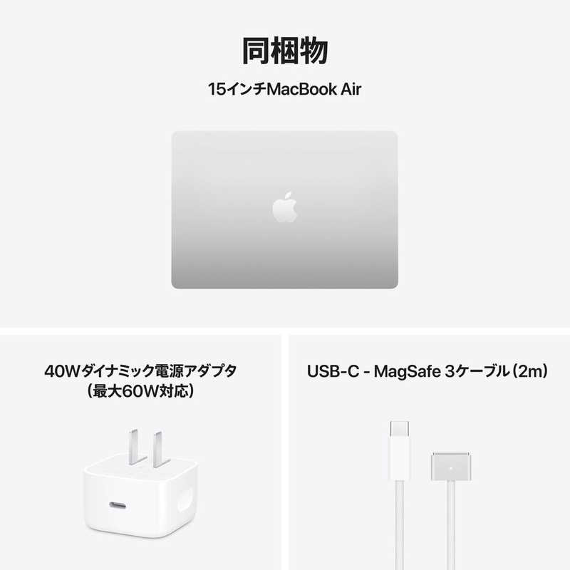 ●同梱品:40Wダイナミック電源アダプタ(最大60W対応)、USB-C - MagSafe 3ケーブル(2m)