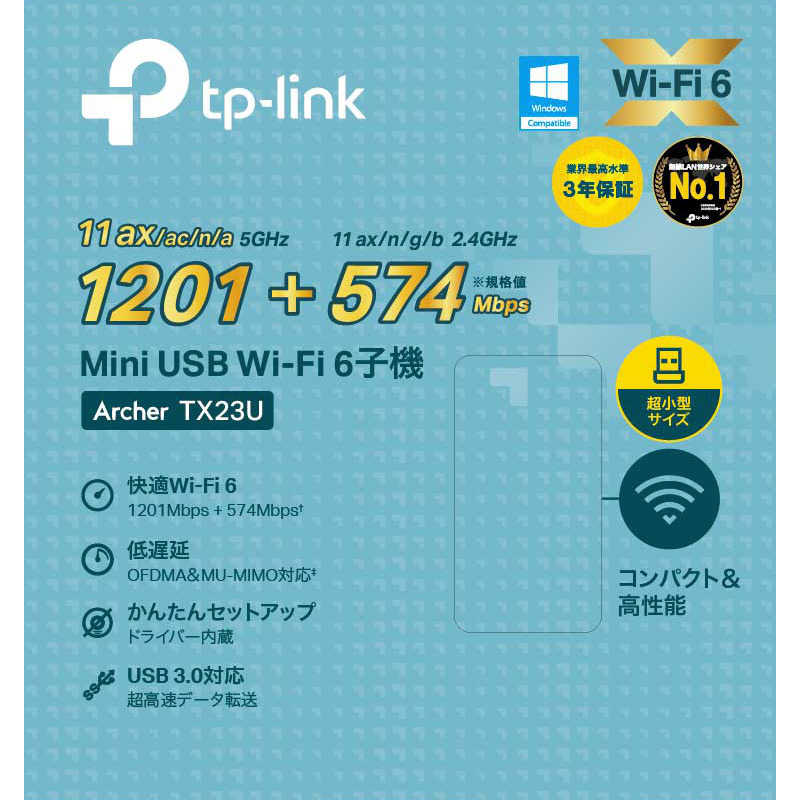 TPLINK Wi-Fi 6 無線LAN子機 AX1800 コンパクト USB 3.0(USB3.2 Gen1)対応11ax/ac/n/a/g/b 1201Mbps+574Mbps MU-MIMO デュアルバンド ArcherTX23U