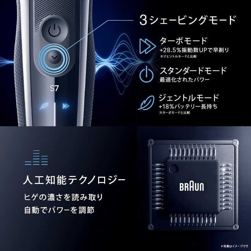 ●人工知能テクノロジーがヒゲの濃さを読み取り、毎秒13回自動でパワーを調節するため、濃い部分もムラなく快適にシェービングできる。