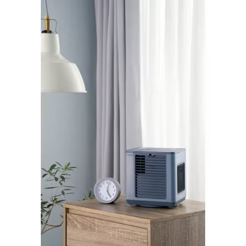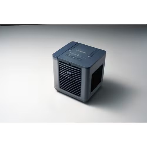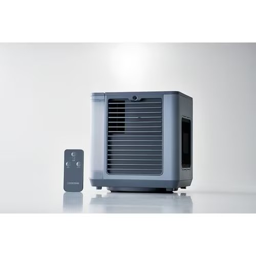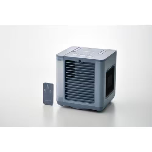 ●省エネ小型クーラー 驚くほど軽量コンパクトな小さい卓上サイズ。持ち運びに便利な「取っ手」付き。専用リモコンも搭載!寝ながら操作できるので便利。
