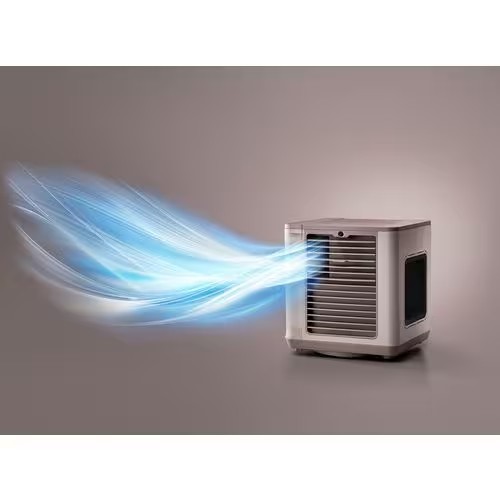 ●省エネ小型クーラー 驚くほど軽量コンパクトな小さい卓上サイズ。持ち運びに便利な「取っ手」付き。専用リモコンも搭載!寝ながら操作できるので便利。