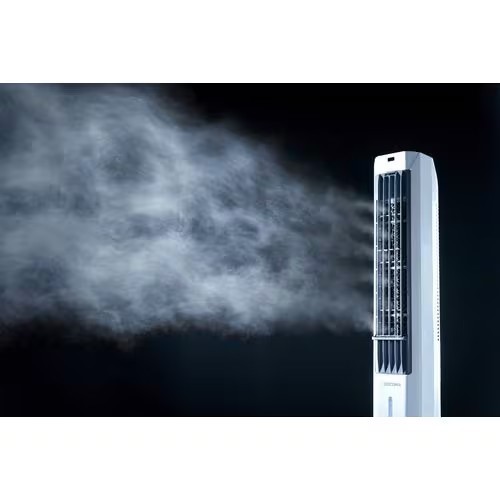6個のミスト発生器搭載。超音波式でミスト発生、わずか約5秒でミストが噴射。うるおい冷風でエアコンより優しい。