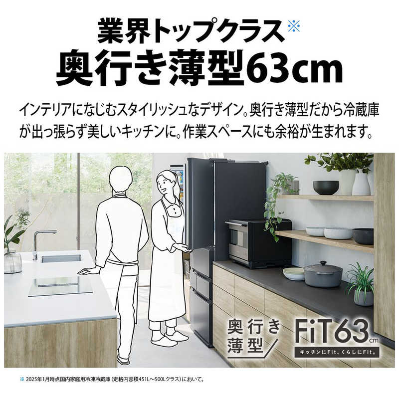 ●奥の食品も手が届きやすい奥行薄型(業界トップクラス奥行薄型 630mm)