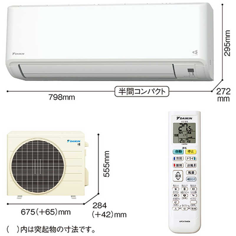 ●室外機サイズ(幅×高さ×奥行)mm: 675(+65)×555×284(+42)6mm