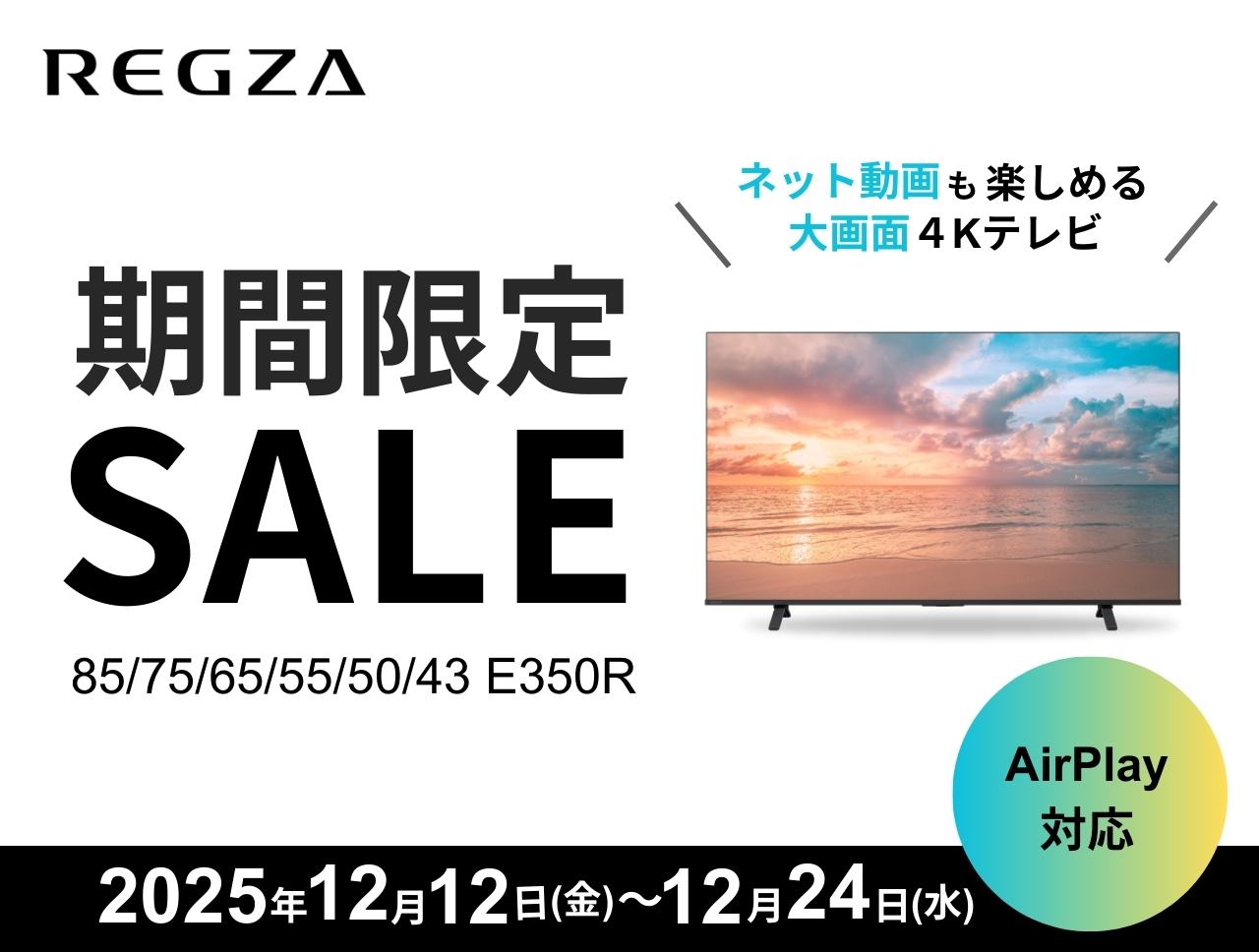 【12/12~12/24まで】REGZA E350R期間限定セール