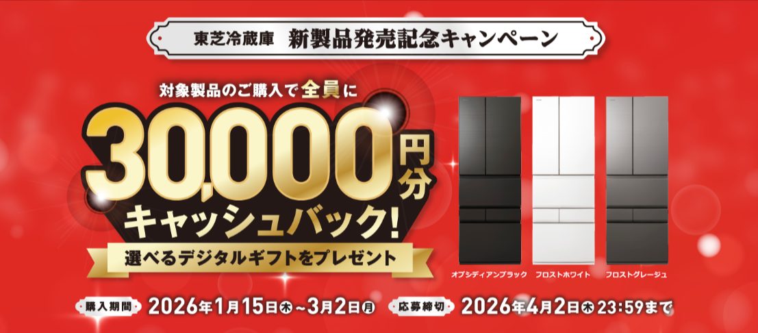 対象商品のご購入で全員に選べるデジタルギフト30000円分キャッシュバック