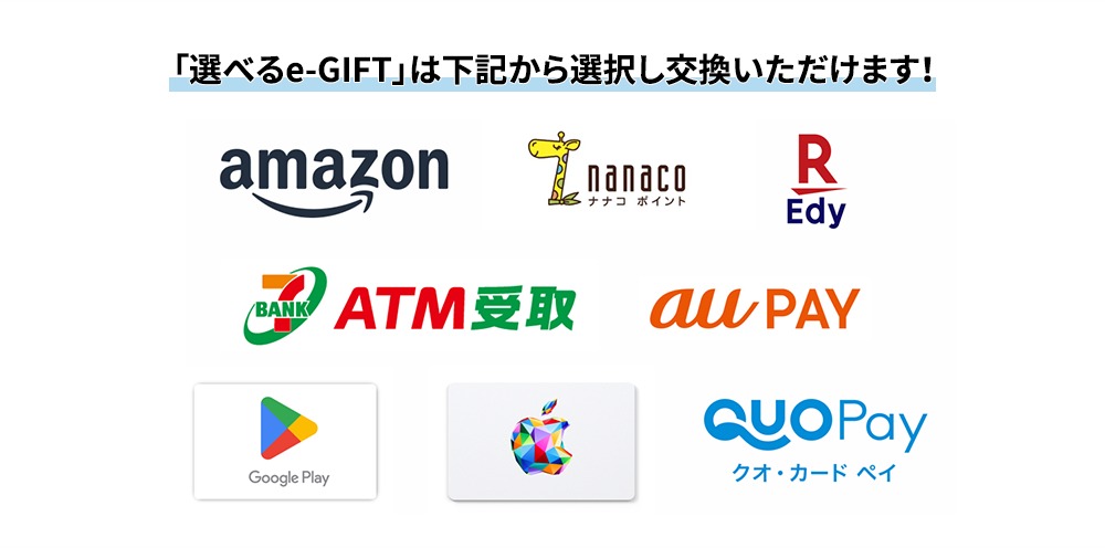 ご希望の電子マネーやギフト券を自由に選択いただけるマルチギフトサービスです。