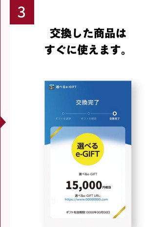 ※「選べるe-GIFT」の有効期限はお受け取りから約6か月以内になります。正確な有効期限は交換画面にてご確認ください。