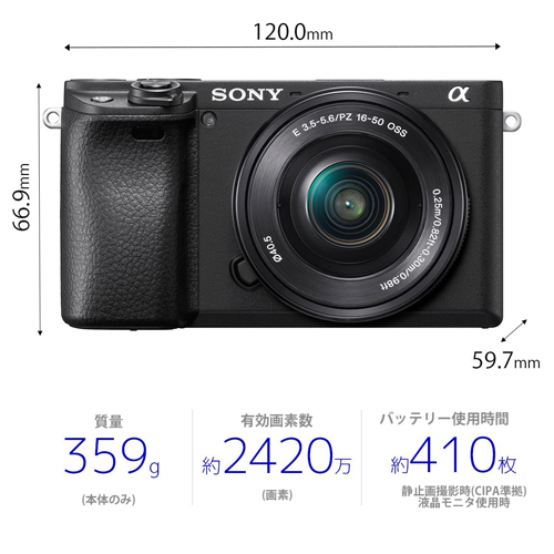 ソニー SONY デジタル一眼 ミラーレスカメラ α6400アルファ6400 ダブルズームレンズキット「ボディ+E PZ 16-50mm F3.5-5.6 OSS+E 55-210mm F4.5-6.3 OSS」 ILCE-6400Y-B ブラック
