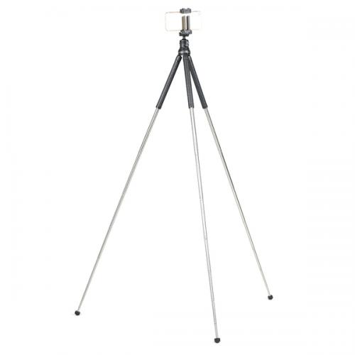 ●カメラ、スマホ、アクションカメラと3通りの機材を取り付けでき、素早く伸ばせる8段三脚。