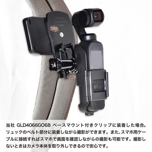 クイックリリースバックルとAねじも付属されていますので、当社ベースマウント付クリップ(GLD4066GO68)にも取付でき、リュックのベルト部分に装着しながら撮影も可能になります。