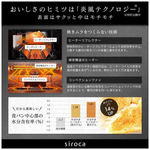 ■おいしくて焼きムラのないトーストに仕上がるシロカの「炎風テクノロジー※」。