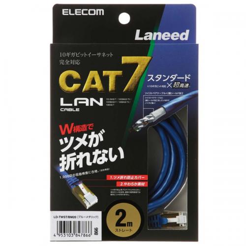 エレコム ELECOM LANケーブル CAT7準拠 爪折れ防止 2m メタリックブルー LD-TWST/BM20