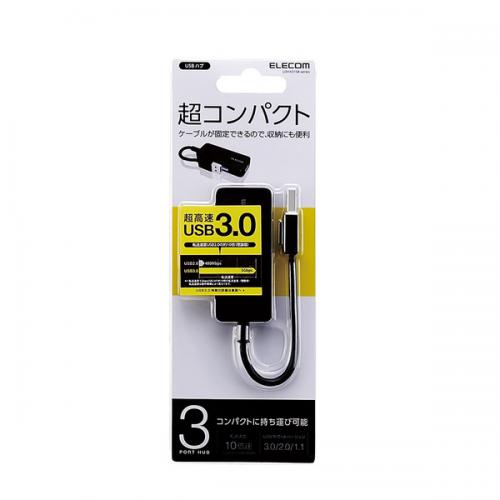 【SALE】エレコム ELECOM USBHUB3.0 ケーブル固定 バスパワー 3ポート ブラック U3H-K315BBK