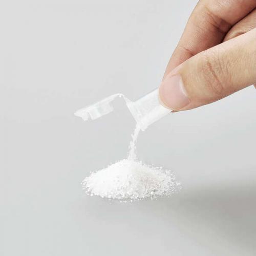 ■水道水に溶かすだけで、手軽に次亜塩素酸除菌水を生成できる“エクリアゼロパウダー”です。