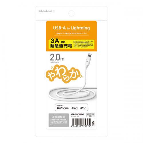 【SALE】エレコム ELECOM iPhone 充電ケーブル ライトニングケーブル 2m MFi認証 超急速 ホワイトフェイス iPhone iPad iPod AirPods各種対応 Lightning MPA-FUALYA20WF