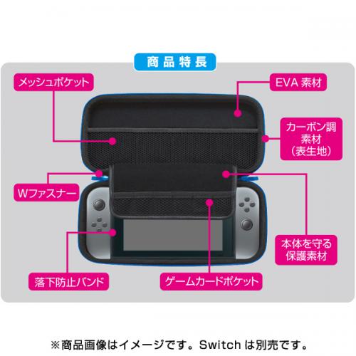 【充実の仕様】イヤホンなど小物が入るメッシュポケット、ゲームカードが6枚収納できるポケット付きです。Wファスナーで開閉がスムーズに簡単にできます。落下防止固定バンド付きです。弊社性のクリアケースを装着したまま収納可能です。 "