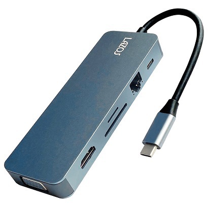 多機能11in1マルチアダプター。MacBookなどに搭載されたUSB Type-Cコネクタから11の機能を拡張できるUSB-Cマルチアダプターです。これ1つでPD充電、モニター・プロジェクター、LAN、USB機器、SD/microSD 、を接続することができます。(USB3.0×3、Type-C PD96W、Type-C、HDMI、VGA、LAN、3.5mmオーディオジャック、SD slot、microSD slot)