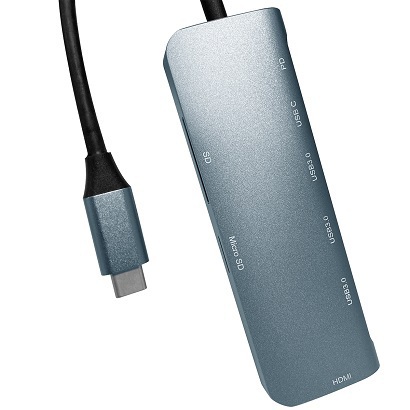 多機能8in1マルチアダプター。MacBookなどに搭載されたUSB Type-Cコネクタから8つの機能を拡張できるUSB-Cマルチアダプターです。これ1つでPD充電、モニター・プロジェクター、USB機器、SD/microSD を接続することができます。(USB3.0×3、Type-C PD96W、Type-C、HDMI、SD slot、microSD slot)