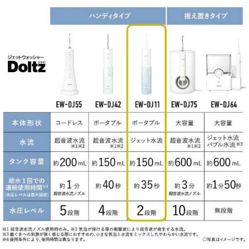 パナソニック Panasonic ジェットウォッシャー ドルツ 防水・ポータブルモデル 電池式 EW-DJ11-A