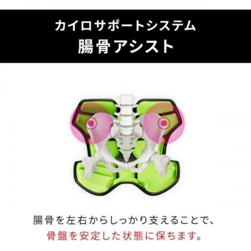 骨盤を安定させるための「腸骨」を支えるとともに、背骨のS字でカーブをつくるための「腰椎」を支え、正しい姿勢をサポートします。