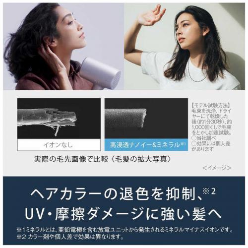 ヘアカラーした髪色をキープするには、キューティクルを守ることが大切。高浸透ナノイー&ミネラル搭載新ヘアードライヤー ナノケア(EH-NA0J)は、キューティクルの密着性を高め、カラー剤の流出を防ぐ※ので、髪色が長もちします。
