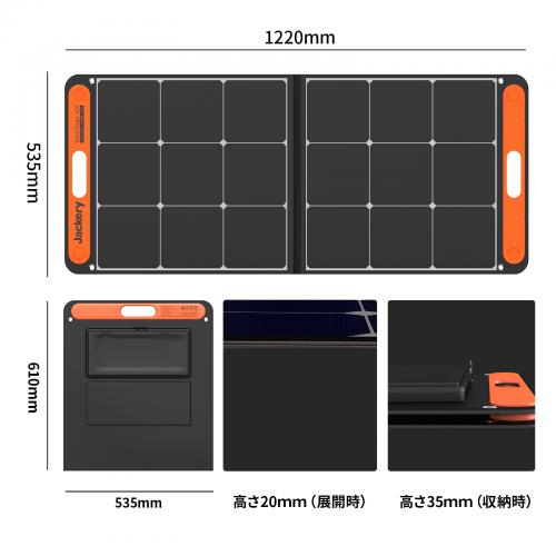 本製品は、Jackery ポータブル電源の全シリーズに対応し、最大100Wで充電することができます。