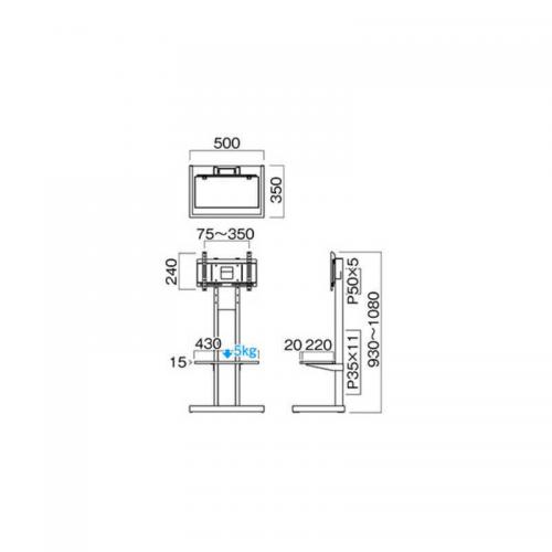 ●W500×D350×H1080(mm)質量:約11kg