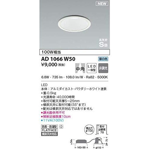 コイズミ KOIZUMI コンフォートダウンライト 中角 パウダリーホワイト AD1066W50