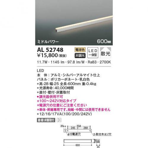 コイズミ KOIZUMI LED間接照明 ミドルパワー 600mm 電球色2700K AL52748