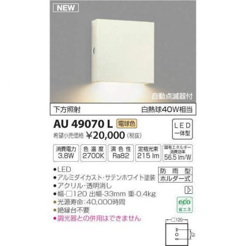 コイズミ KOIZUMI LED防雨ブラケット AU49070L