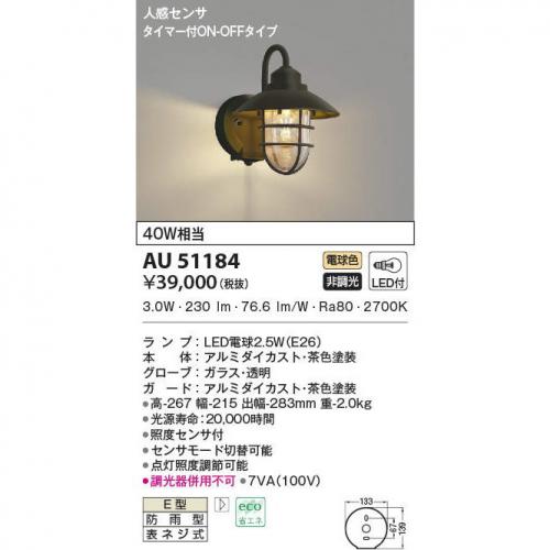 コイズミ KOIZUMI LEDポーチ灯 人感センサ タイマー付ON-OFFタイプ AU51184