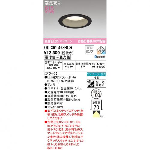 オーデリック ODELIC LEDダウンライト ハイコーンタイプ 浅型 Bluetooth対応リモコン別売 調光調色 白熱灯100Wクラス 電球色 昼光色 OD361468BCR