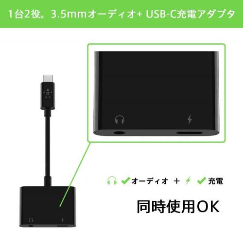 BELKIN 3.5mmオーディオ + USB-C充電アダプター 60W急速充電 NPA004BTBK