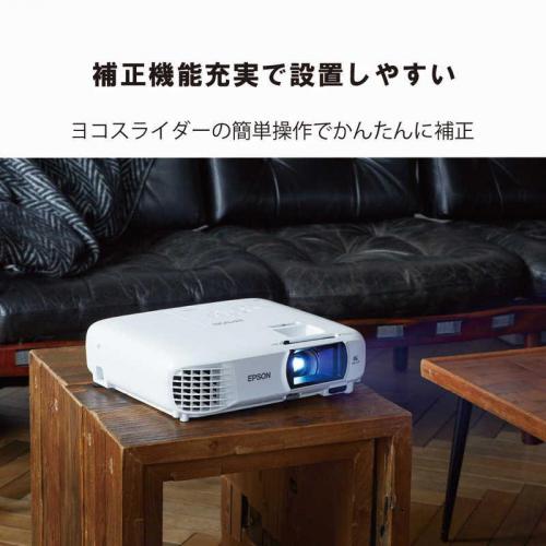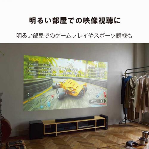タテヨコ台形補正機能搭載でななめ横からの投写でも簡単に補正が可能。2.3mで100インチの投写距離で、限られたスペースでも大画面を実現。スクリーンがなくても手軽に壁に投写して様々なコンテンツを楽しめます。