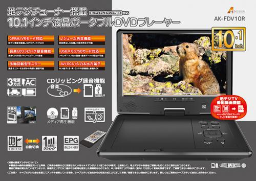 【SALE】AKART アカート ポータブルDVDプレーヤー 10.1インチ フルセグ搭載 AK-FDV10R