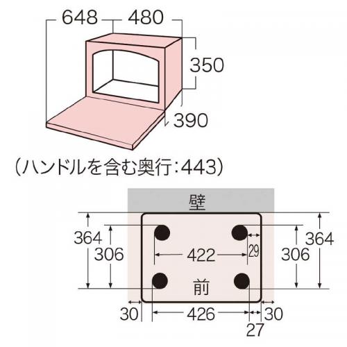 設置寸法:背面ピッタリ、左右3.0cm以上、上方は10cm以上あけてください。